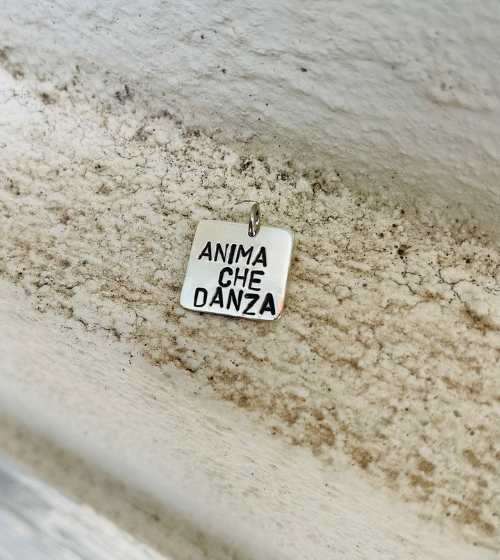 Questa piastrina della collezione Legami è realizzata in argento 925, interamente fatta a mano e incisa con la tecnica dei punzoni, che dona ad ogni parola la forza dell’artigianalità autentica.