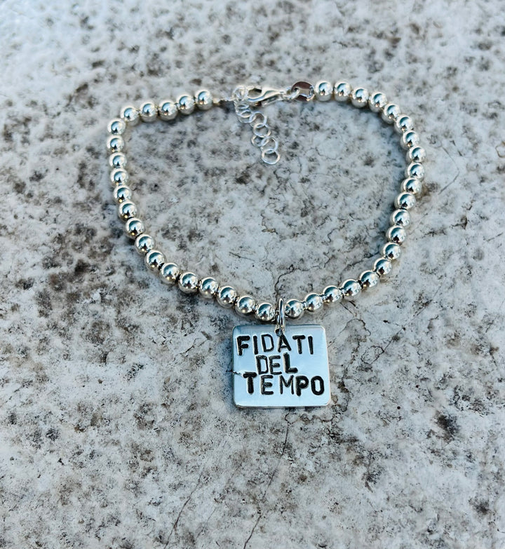 Il bracciale a sfere è una base elegante e discreta pensata per accogliere e valorizzare le targhette della collezione Legami.