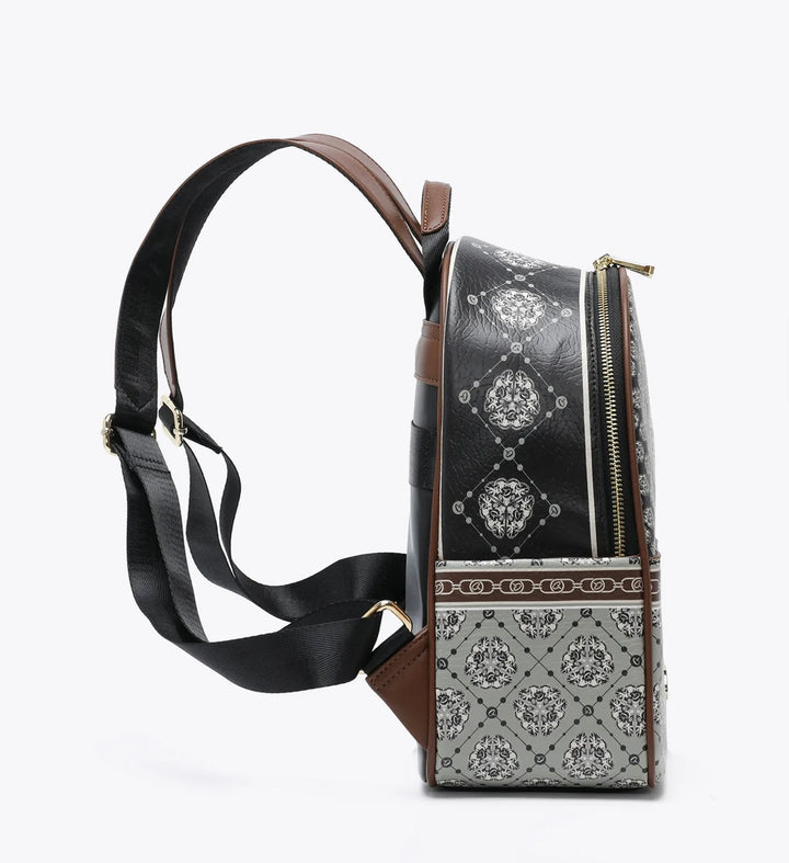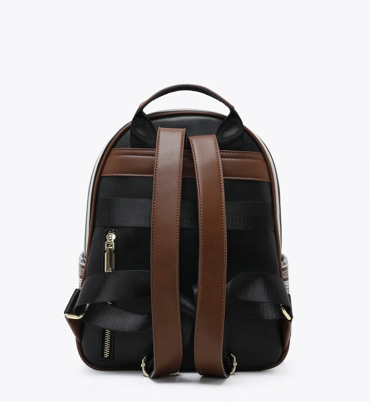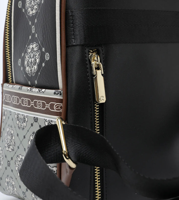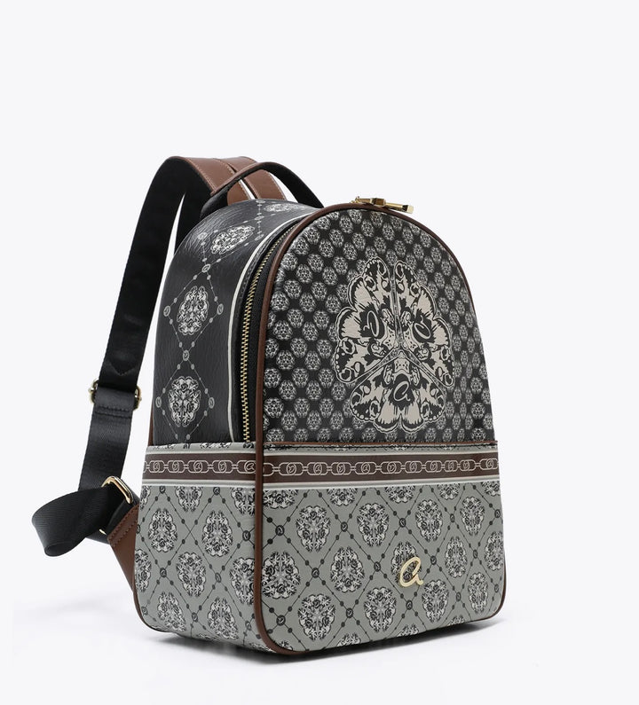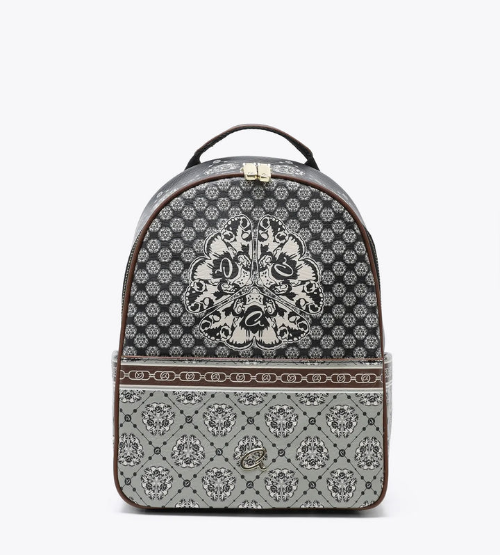 Zaino Malin da donna con doppia cerniera. È realizzato in ecopelle di alta qualità e presenta tre diverse versioni della stampa farfalla Axel che lo adornano. È stato progettato per offrire sia grande capacità che organizzazione. All'interno contiene fodera, una tasca con cerniera e due tasche aperte, mentre all'esterno ha due tasche sui lati e una frontale che si chiude con una clip magnetica. Con cinghie posteriori che possono essere regolate all'altezza appropriata e una cinghia per valigia aggiuntiva. Uno zaino molto elegante e speciale per un aspetto unico.