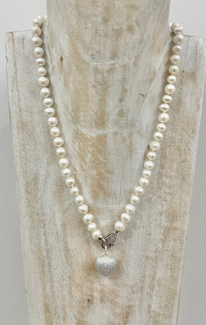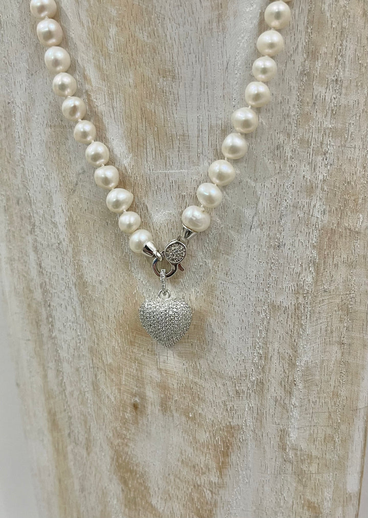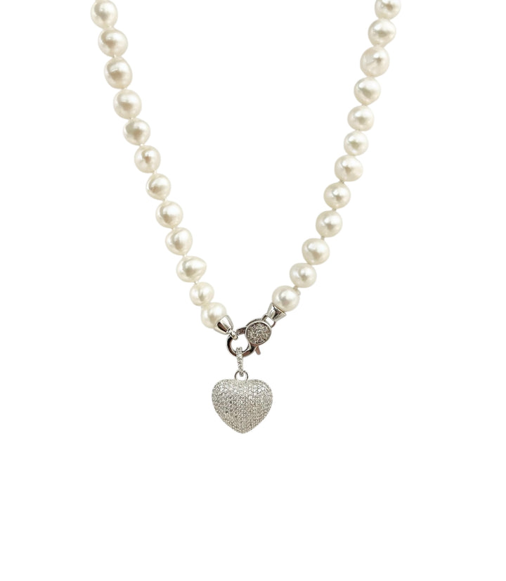 🤍 Collana di Perle Naturali con Cuore in Argento 925 Rodiato