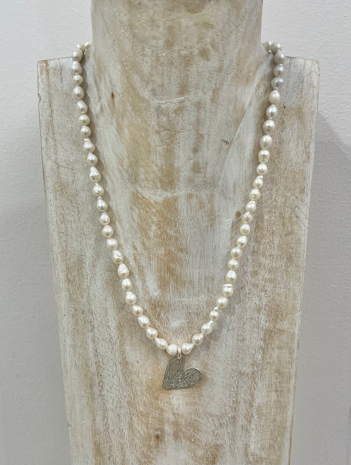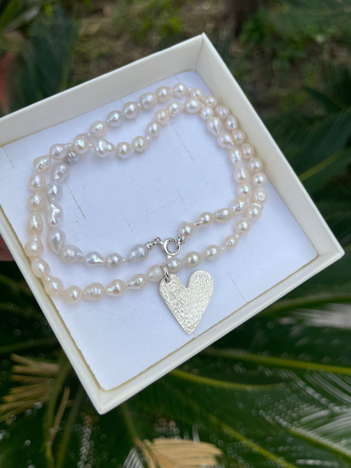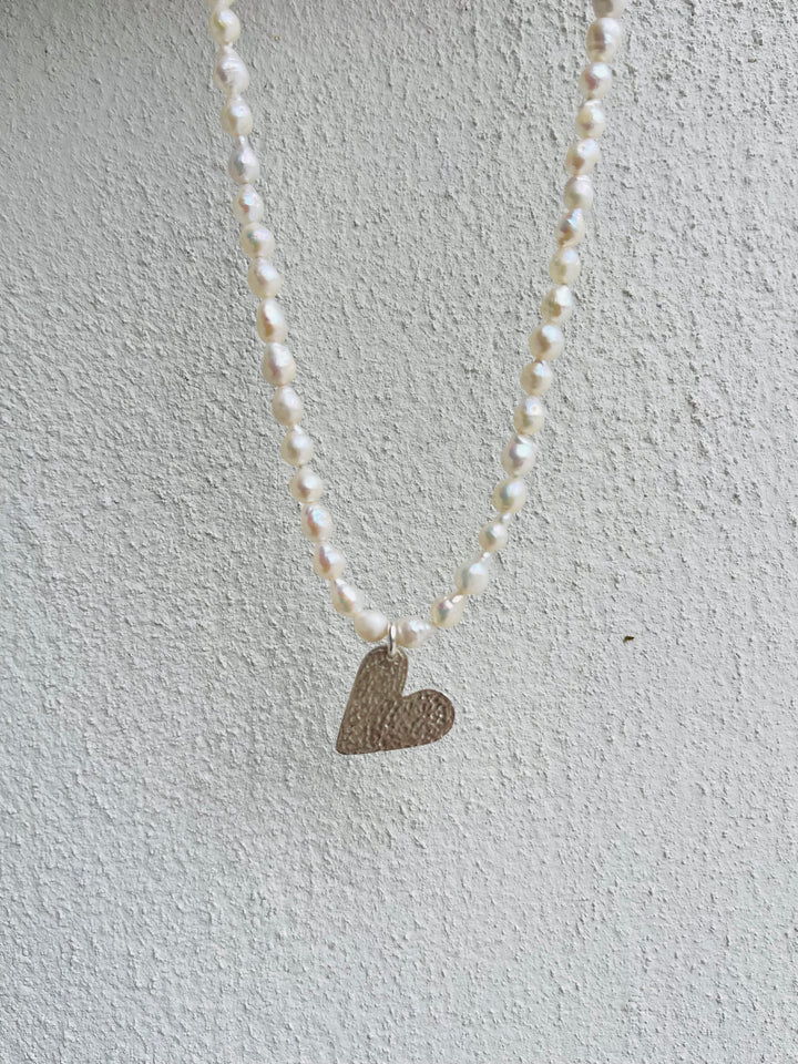 🤍 Collana in Argento 925 con Mini Perle Barocche e Cuore Martellato