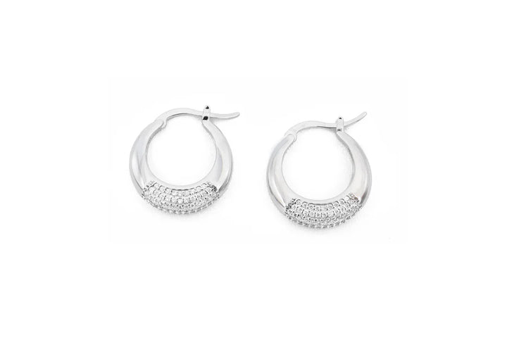 Orecchini a cerchio in argento 925 rodiato con zirconi. Un delicato cerchio in argento 925 rodiato, leggermente smussato per un effetto morbido e moderno, impreziosito da piccoli zirconi scintillanti posizionati nella parte inferiore. La chiusura comoda li rende pratici da indossare, perfetti per ogni outfit e adatti a qualsiasi momento della giornata, aggiungendo un tocco di luce ed eleganza senza sforzo.