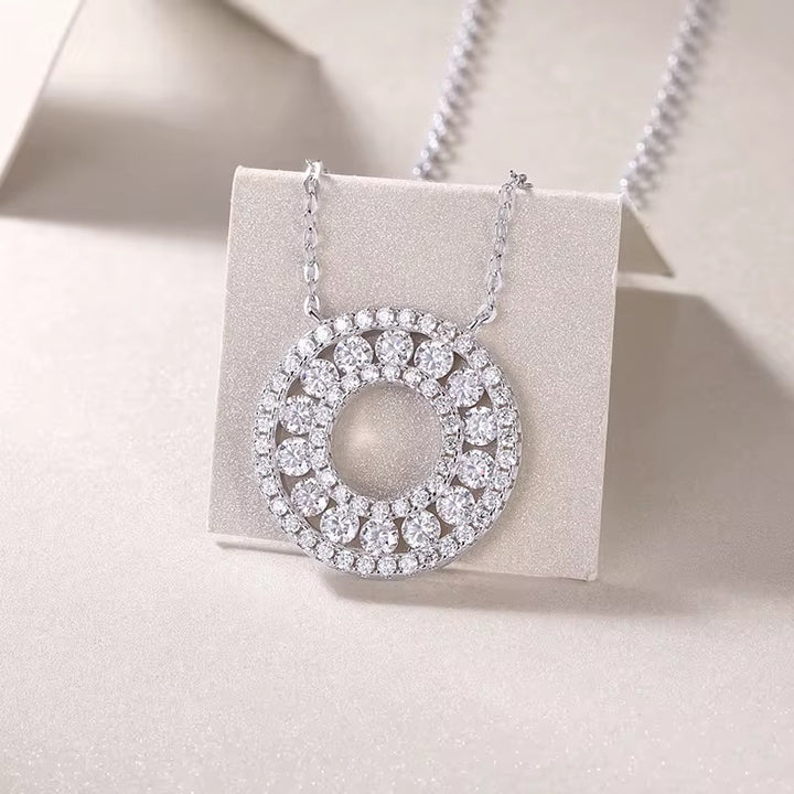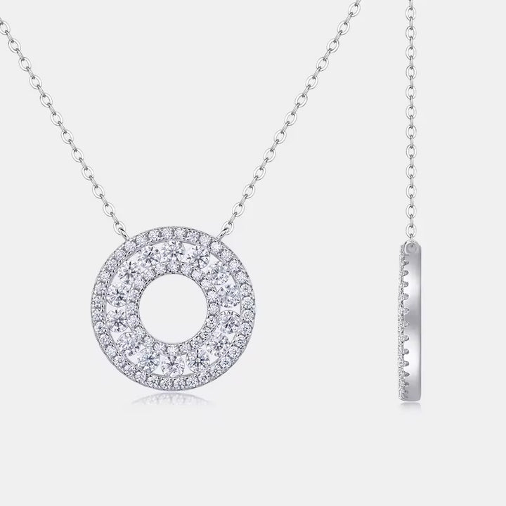 Un cerchio di luce pura, simbolo di armonia ed eleganza.Questo pendente della Collezione Platinum è realizzato in argento 925 con bagno di rodio e impreziosito da moissanite certificata di altissima qualità, capace di riflettere la luce con intensità straordinaria. Un gioiello raffinato, perfetto in ogni dettaglio, che unisce design contemporaneo e manifattura d’eccellenza.