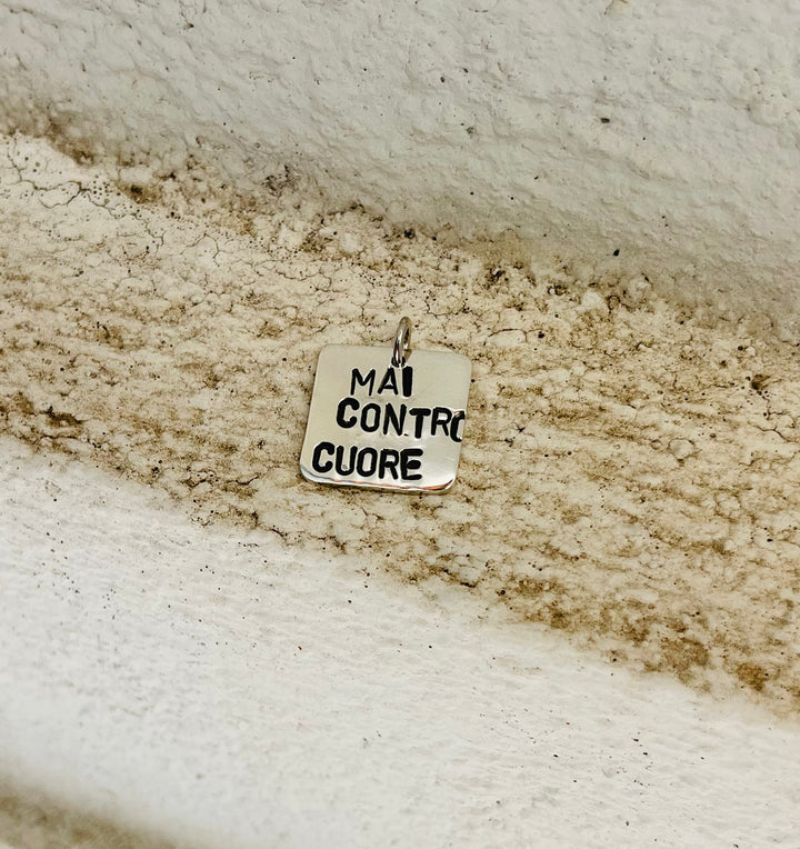 La scritta “MAI CONTRO CUORE” racchiude un significato profondo: un invito a seguire sempre ciò che si sente, a vivere con autenticità e coerenza con i propri valori.