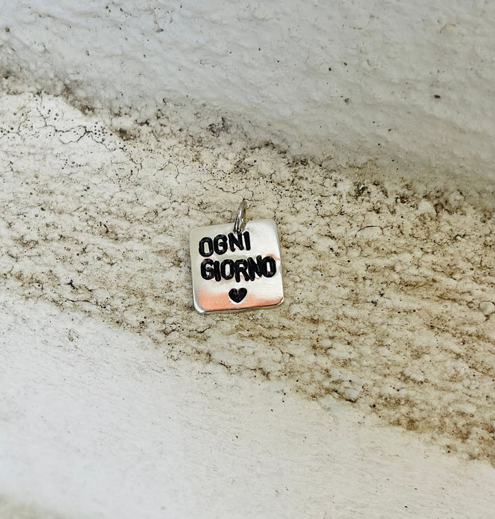 Un frammento di tempo da portare sempre con te, un ricordo che si rinnova ogni giorno. La piastrina OGNI GIORNO è realizzata in argento 925 e incisa a mano con la tecnica dei punzoni, un’antica arte che imprime su ogni pezzo un’anima unica e irripetibile.