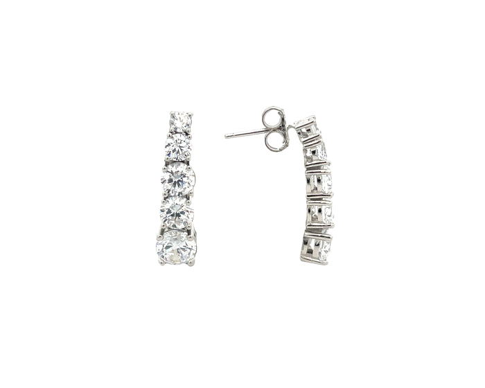 Realizzati in argento 925, questi orecchini presentano una sequenza di zirconi luminosi, incastonati uno dopo l’altro per creare un effetto di scintillio continuo e sofisticato.