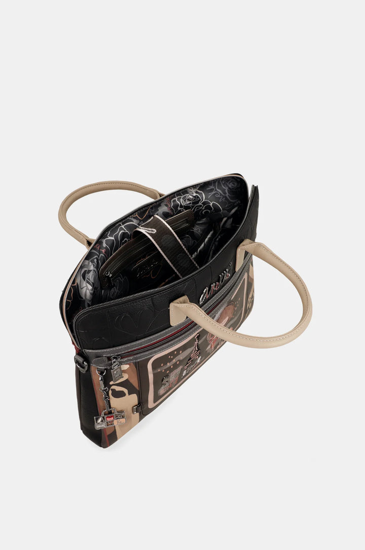 - Tasche: 1 tasca anteriore, 1 tasca posteriore interna, 1 tasca per cellulare e 1 tasca con cerniera