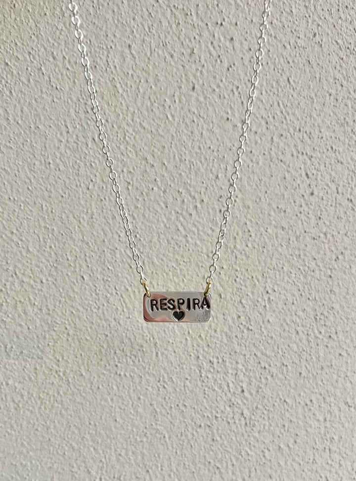 Sulla piastrina è incisa la parola “Respira”, un promemoria prezioso da portare con sé: un invito a rallentare, a ritrovare il proprio centro, a ricordarsi che ogni respiro è un nuovo inizio.