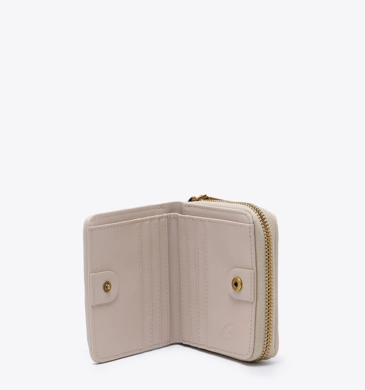 Portafoglio da donna Lene, realizzato in ecopelle appositamente sagomata con un look trapuntato in rilievo. È diviso in due sezioni, una con una cerniera e una con una chiusura in metallo. Ha scomparti per monete, carte e banconote. In una taglia piccola, un accessorio ideale per qualsiasi borsa.
