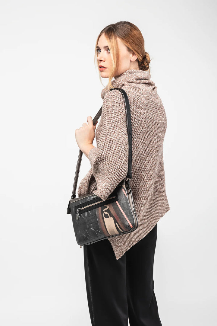 - Tasche: 1 tasca posteriore, 1 tasca interna per cellulare e 1 tasca con cerniera