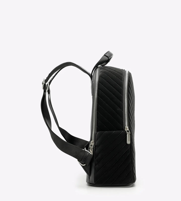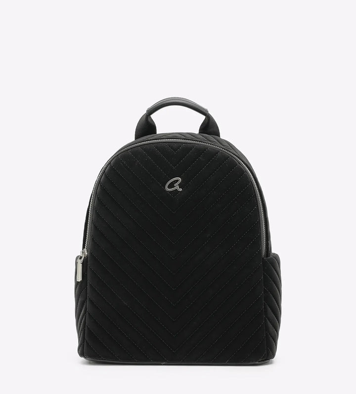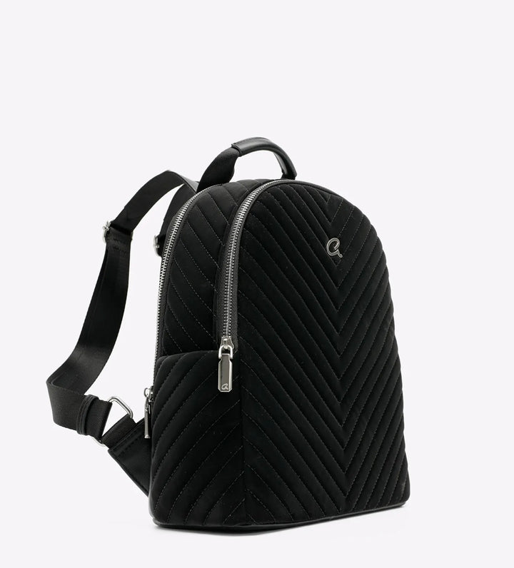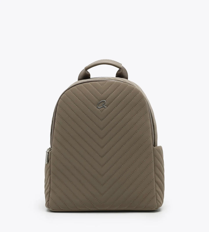 Zaino Hilde realizzato in ecopelle speciale con trama in pelle scamosciata e cuciture che gli conferono anche un aspetto morbido trapuntato. È di grandi dimensioni e ha più tasche per una facile organizzazione. Ha due tasche con cerniera e tasche laterali, mentre l'interno è foderato e include due tasche aperte e una con cerniera. Le cinghie posteriori sono larghe e possono essere regolate all'altezza appropriata. Il suo aspetto è completato con dettagli metallici opachi in tonalità argento. Uno zaino molto speciale con un aspetto distintivo, comodo per l'uso quotidiano.